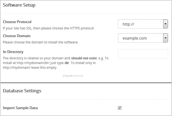 • In Directory: If you want to install this in a directory, for example example.com/directory, enter the directory name. Otherwise, leave this blank to install in your main domain example.com
