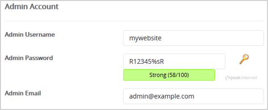 • Admin Username: Your new b2evolution username (for security reason do not use the "Administrator" or the "Admin" username.)