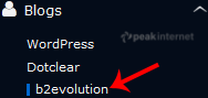 4.  On the left side of your screen you should locate the "Blogs" category. Click on it and then click on the "b2evolution" link that will appear.