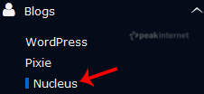 4.  On the left side of your screen you should locate the "Blogs" category. Click on it and then click on the "Nucleus" link that will appear.