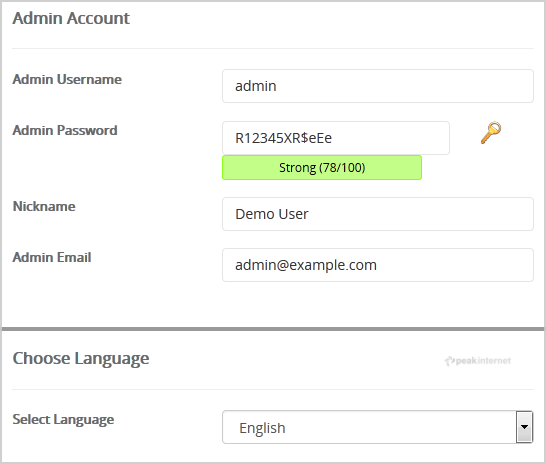 • Admin Email: Your e-mail address.