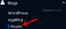 4.  On the left side of your screen you should locate the "Blogs" category. Click on it and then click on the "PivotX" link that will appear.