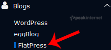 4.  On the left side of your screen you should locate the "Blogs" category. Click on it and then click on the "FlatPress" link that will appear.