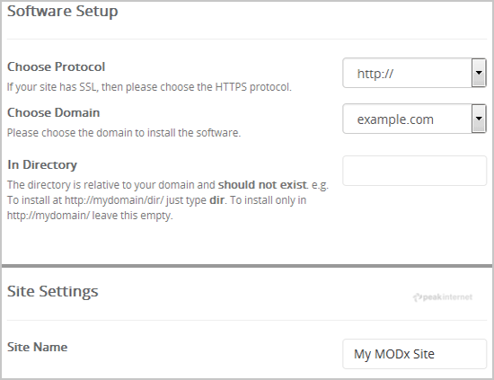 - Site Name: Enter the name of your website, such as "MODX".