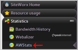 2. Under "SiteWorx Menu", click the "Statistics" menu item if it is not already open.