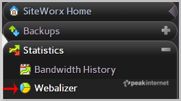 2. Under "SiteWorx Menu", click the "Statistics" menu item if it is not already open.