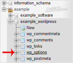 3. In left side-bar, Click on the expand button to expand database like "example".