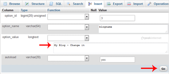 7. Edit "My Blog" to different text and then click on "Go" button.